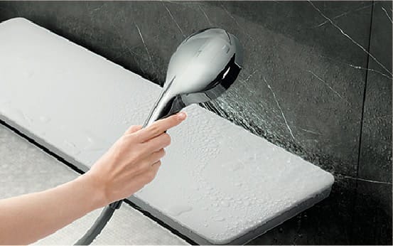 TOTO独自のノズルで大粒の水玉をスイングしながら勢いよく吐水。スプレーシャワーとの組み合わせで、適度な刺激感と節水を両立します。