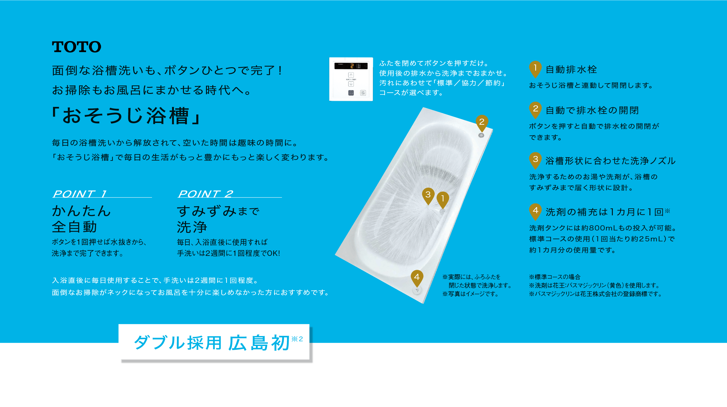 広島初「おそうじ浴槽・床ワイパー洗浄」ダブル採用