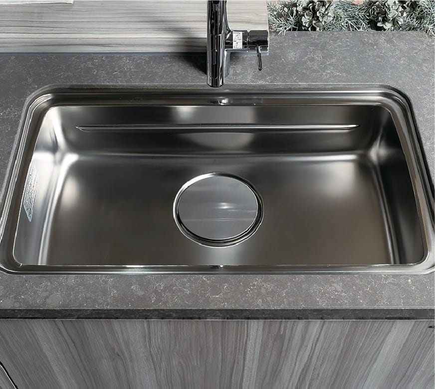 低騒音設計のシンクとなっており、水の跳ねる音や流れる音を軽減できます。