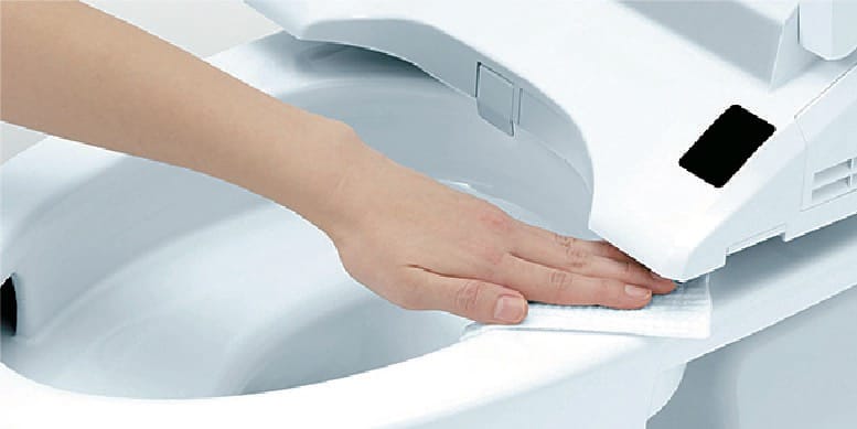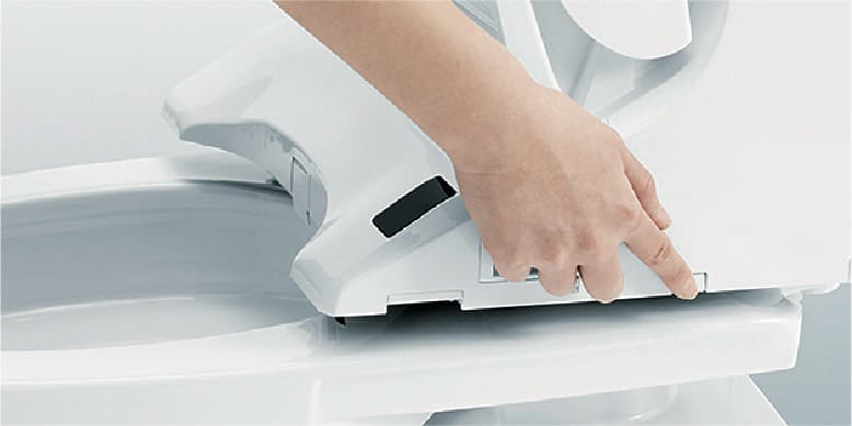 ワンプッシュで「ウォシュレット」前方が持ち上がるので、汚れがたまりやすい便器とのすき間もラクにお掃除できます。
