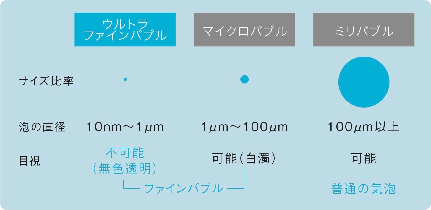 ウルトラファインバブルとは、ナノサイズの極小の気泡のことで、汚れの付着を防止、付着した汚れの剥離も期待できます。それにより、お風呂時間はお家がエステ感覚に、肌やうるおいやクレンジング力、毛髪の光沢度や引張り強度アップが期待できます。うがい歯磨きの口内ケアも充実。気になる水廻りの汚れ、水垢を付きにくくし、お掃除時間を短縮するなどさまざまな効果が期待できます。