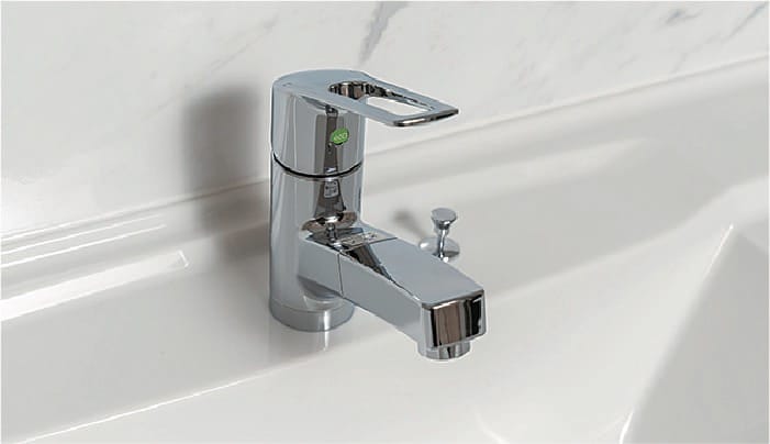 壁や浴槽と離し、汚れがたまりにくいデザイン。表面に特殊加工を施した親水層の効果で汚れ落ちがスムーズに。水あかの強固な固着も抑制します。